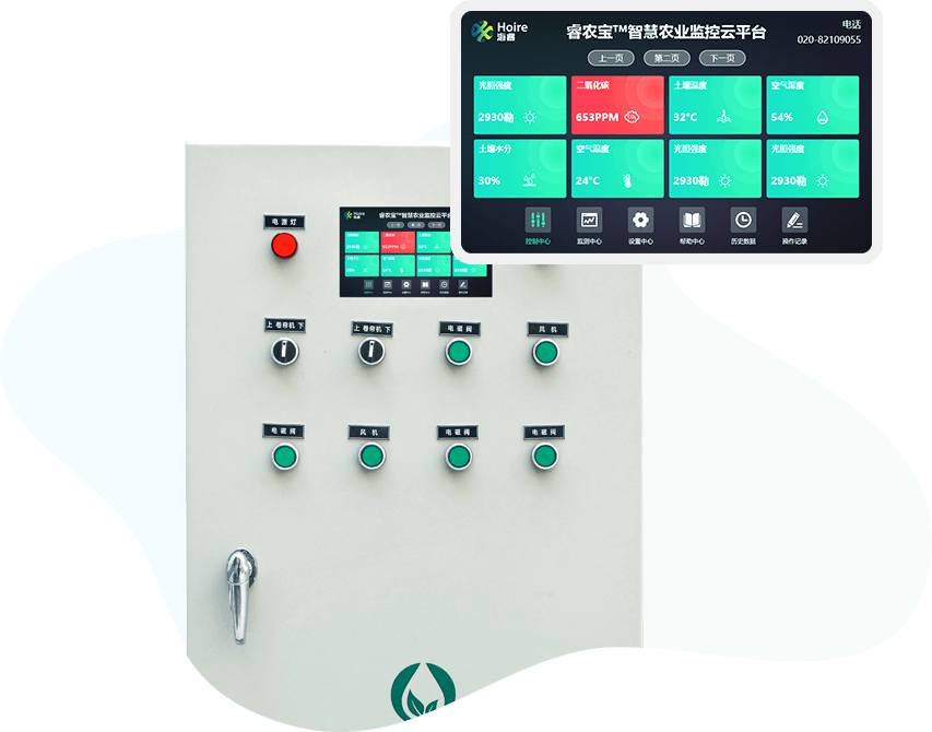 智能電氣控制柜可用于對設(shè)施農(nóng)業(yè)內(nèi)的各種設(shè)備進行集中管理,包括風機、卷簾機、日光燈、灌溉器等。控制柜內(nèi)置GPRS模塊,可與云服務(wù)器相連,通過“睿農(nóng)寶”APP可以各個獨立的設(shè)備進行遠程控制。