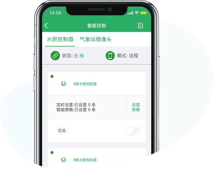 通過睿農(nóng)寶APP,可以對設(shè)備進行遠程控制。同時還可以通過APP設(shè)置智能控制策略,可以實現(xiàn)定時、定點的控制設(shè)備。結(jié)合“睿農(nóng)寶”環(huán)境監(jiān)測設(shè)備,還可以根據(jù)現(xiàn)場環(huán)境情況進行智能控制。例如當溫度過高時打開風機,當光照不足時打開日光燈等,實現(xiàn)自動化生產(chǎn)管理。