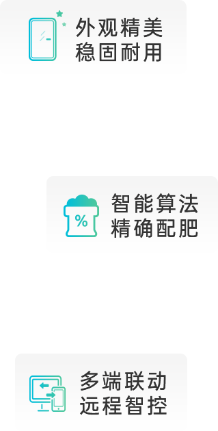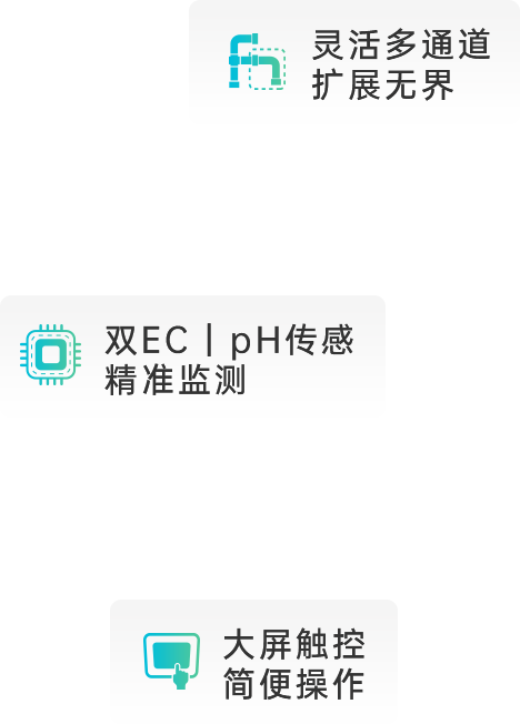 標配3肥1酸通道,模塊化設計,支持肥料通道、閥門數量任意擴展,靈活應用各種種植管理需求。